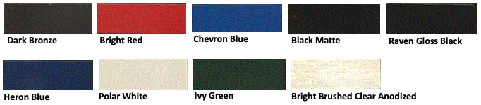 ESCO carries the following colors for 5" wide, pre-painted, aluminum return material from the chart below. Additional colors would require custom painting.